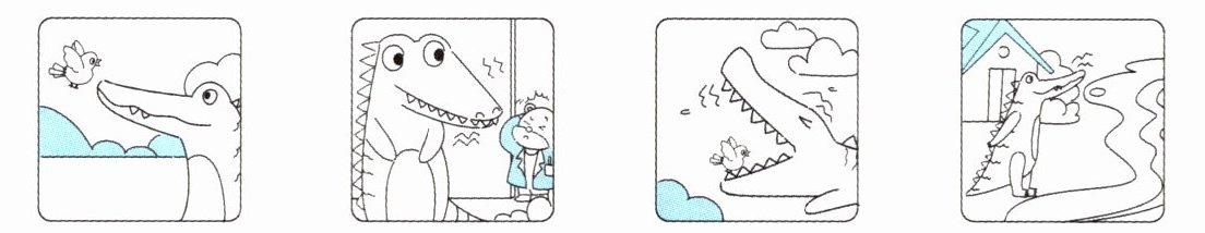 4. The crocodile cries and cries. Suddenly, he feels a little better. He closes his mouth and the teeth hurt again.