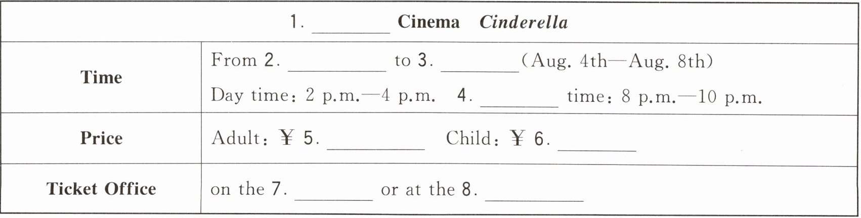五、听录音,补全表格信息,每空一词或数字。(听三遍)
