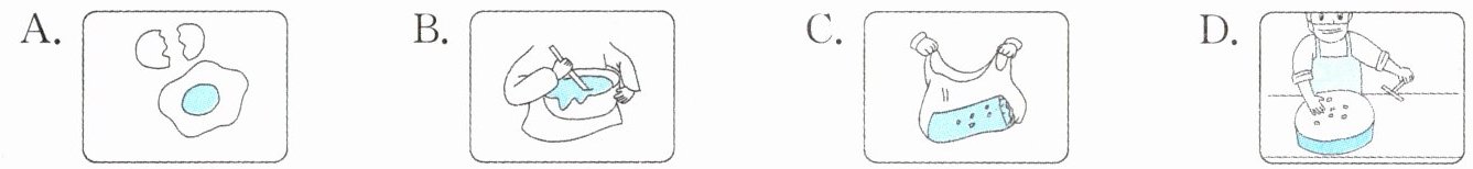 )3. 漫画图解 Which picture shows the last step of making an egg pancake?A.