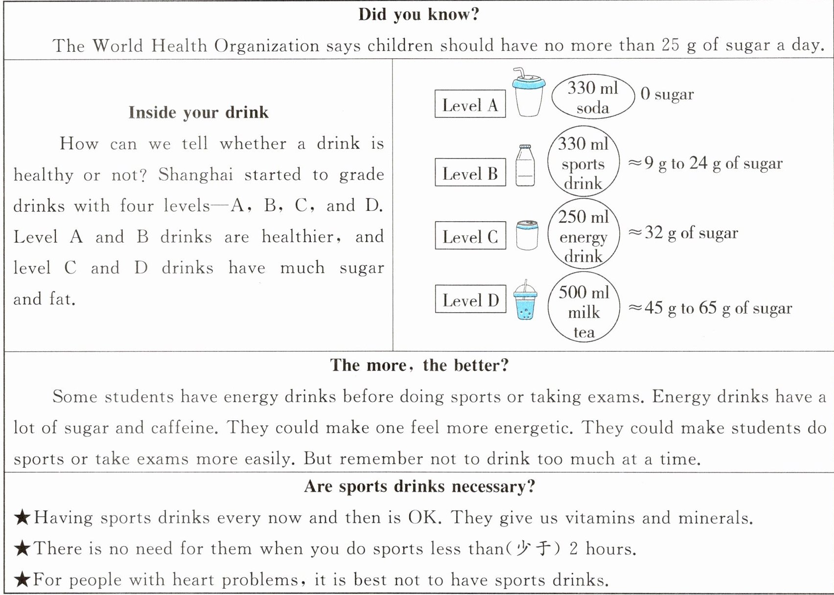 二、Suzy 正在读一份饮品报告。阅读报告,选择正确的答案。