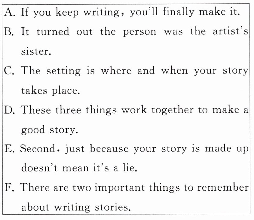 【语篇解读】本文是一篇说明文,主要介绍了怎样写好一个故事。