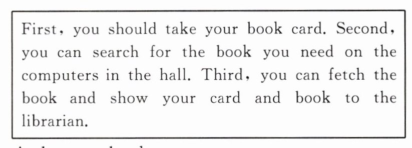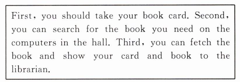 答案:5. A 解析:根据操作指南“带借书卡、在电脑上搜书、取书后向管理员出示卡片和书”可知,这些步骤均为借书流程,故选 A。