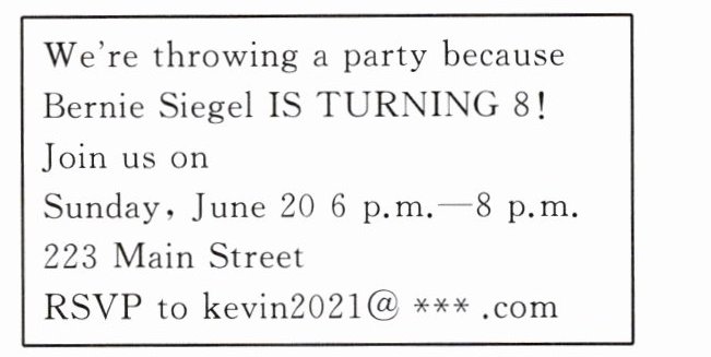 答案:4. B 解析:卡片内容包含“举办派对的原因、时间、地点、回复方式”,符合邀请函的特征,而非明信片、通知或邮件,故选 B。
