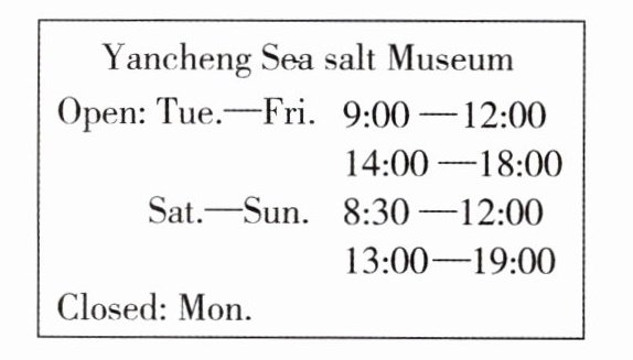 7. 看这幅图。盐城海盐博物馆周五下午开放多长时间?