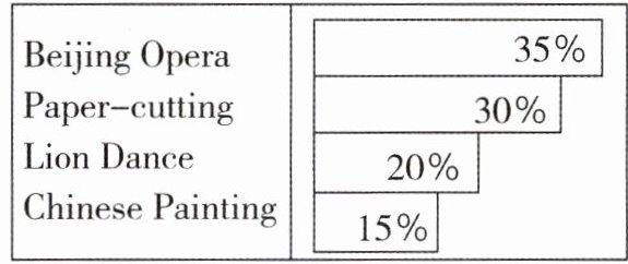 看下面的表格。根据对台州一百名外国人的一项调查,他们中有三十五人对京剧感兴趣。