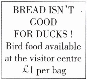 3. ——下面的标识告诉游客不要做什么?——我们______用面包喂鸭子。