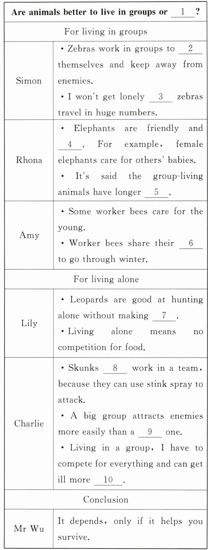 Mr Wu: Some animals like living in groups, others don't. Which is better, and which type would you be?