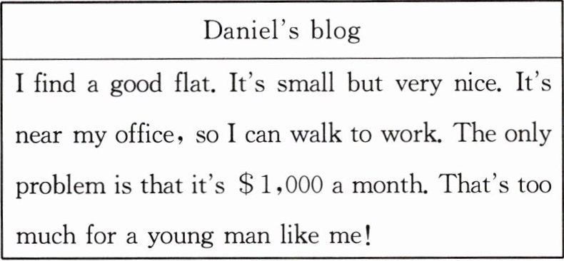 答案:8. D 解析:根据 Daniel 的博客“I find a good flat. It's small but very nice.”,可知他的公寓很好,故选 D。