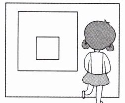 2. 看这幅图。这个女孩在墙上画了两个正方形。