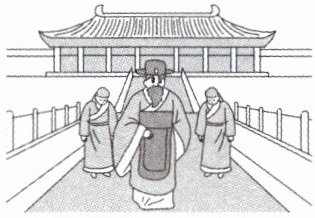 ①在中国古代,当和地位较高的人或老人一起行走时,(随行的人)应该低下头、弯下腰,走在他们身后一点的位置。如果三个人一起走,年长者或老师应该走在中间。当从年长者或老师身边经过时,(行人)应该鞠躬并迈着小步快速走过。