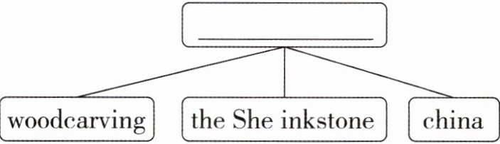 答案:11. A 解析:A 项"Chinese folk art"(中国民间艺术);B 项"Chinese history"(中国历史);C 项"Chinese knots"(中国结);D 项"Chinese craftspeople"(中国手艺人)。图片中"woodcarving"(木雕)、"the She inkstone"(歙砚)、"china"(瓷器)均属于民间艺术,故选 A。