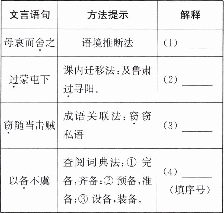 10. (1)放弃 (2)经过 (3)暗地里 (4)②