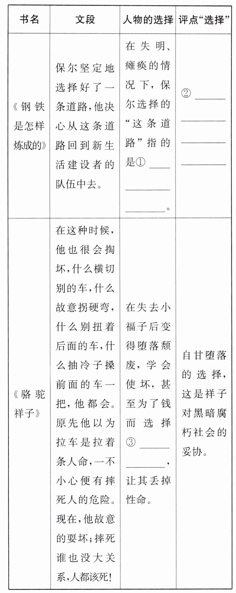 (2) 表格中的内容分别选自老舍的《骆驼祥