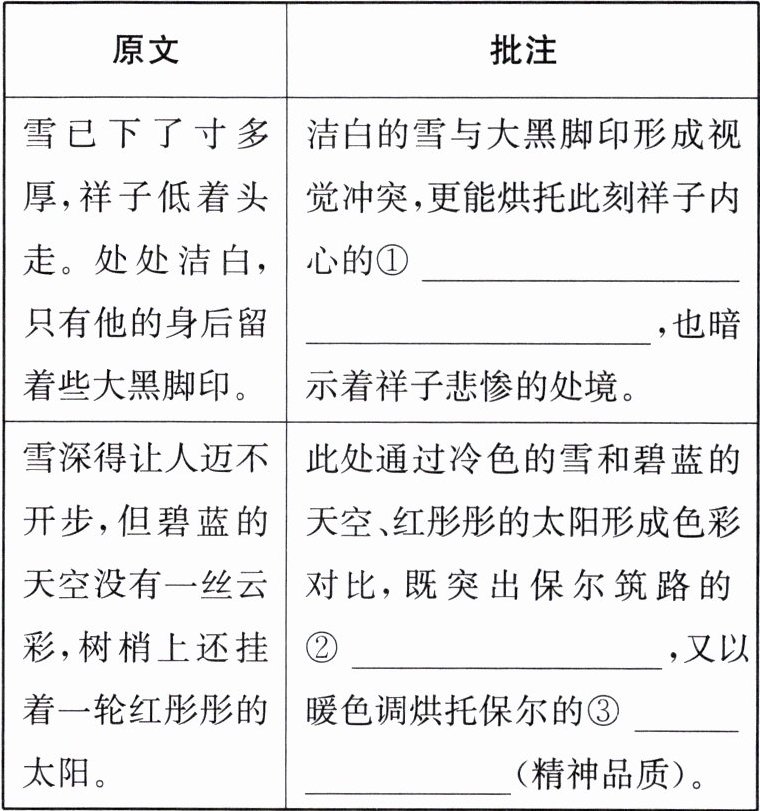 (2) 阅读语段后,小靖说:“祥子在雪天被驱