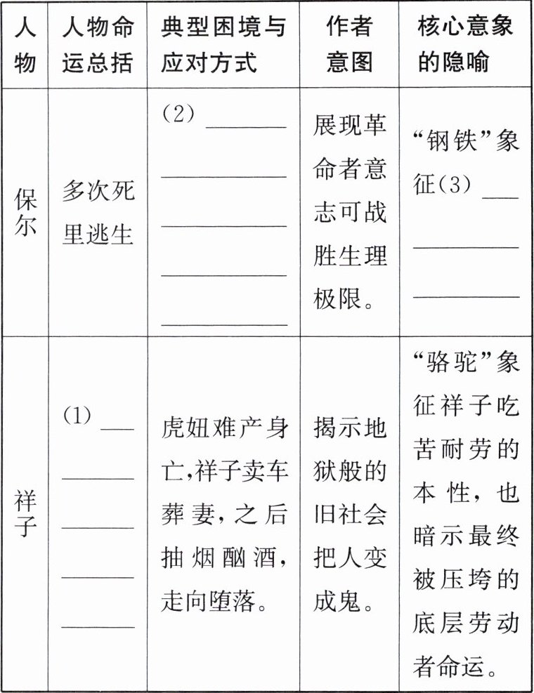 答案:2.(1)由积极向上、充满希望的人力车夫,逐渐堕落成行尸走肉