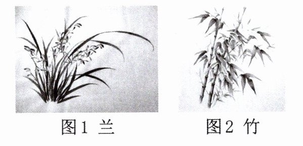 答案:8. 示例一:我认为图1较为合适。因为兰花高洁典雅,芳香馥郁,就像君子之德,感化着众人;也像君子之善,温暖着世间。示例二:我认为图2较为合适。因为竹刚柔并济,弯而不折,折而不断,于风霜凌厉中苍翠俨然,能够体现君子坚持自我、刚直不阿、有气节、谦虚等高尚品德。