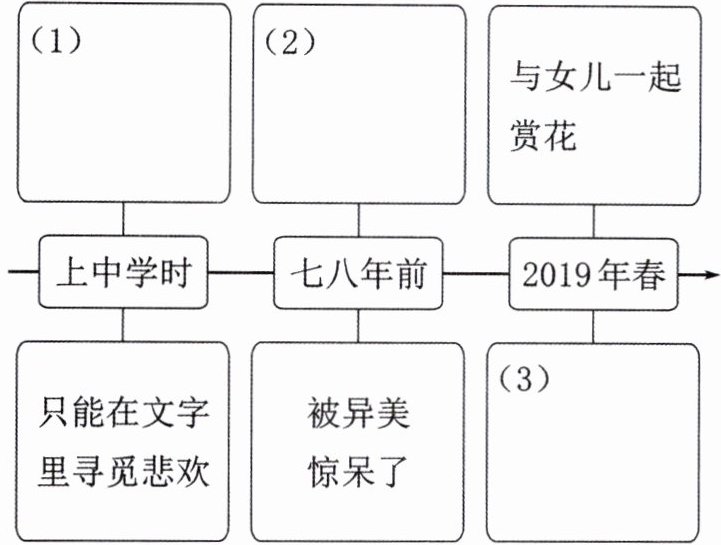 8. 文章写了“我”跟紫藤萝有关的三件事,请根据文章内容将下面的思维导图补充完整。
