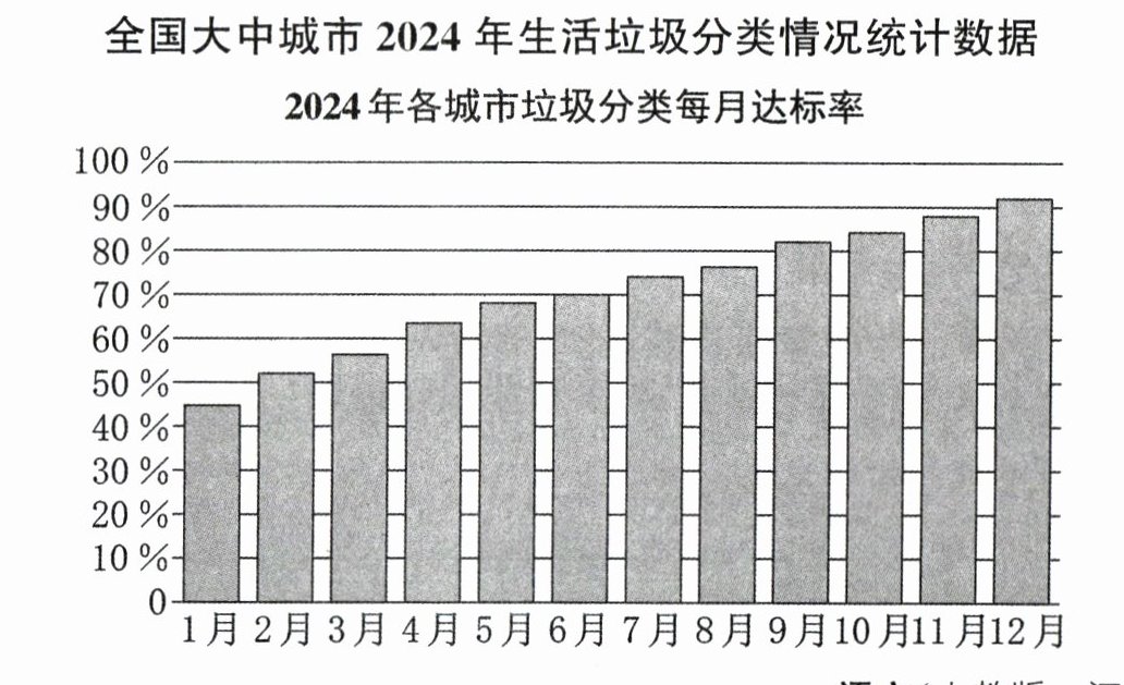 10. 材料一是全国大中城市 2024 年生活垃圾分类情况,从中你可以获取哪些信息?请写出两点。(4 分)