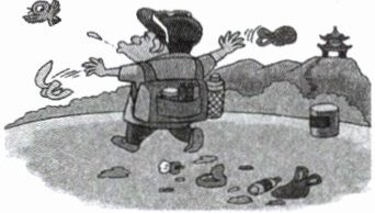 13. 如果有同学在研学活动中出现了材料四漫画中的现象,你会怎样劝告他?请结合上述材料,写一段 80 字左右的话。(4 分)
