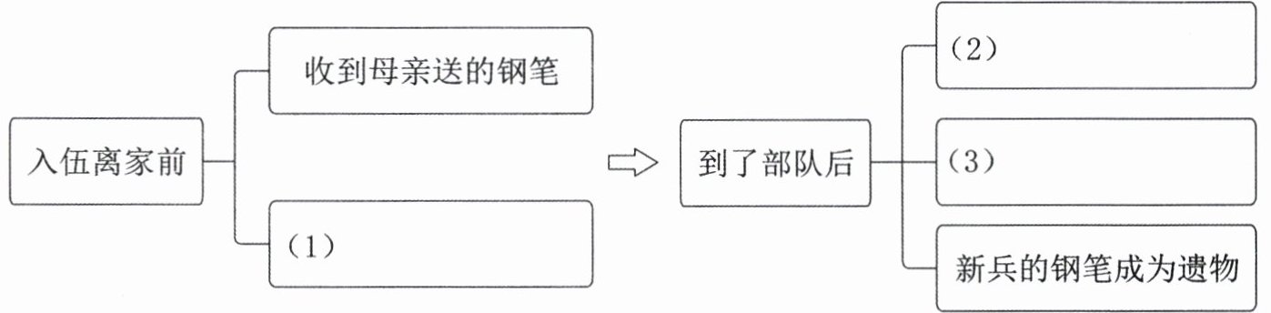 14. [导演说戏] 小说以钢笔为线索组织材料,请你按照顺序,补充下面的思维导图,让演员对内容有个整体把握。(6 分)