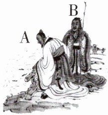 12. 小风在整理庄子专题时,课文《庄子与惠子游于濠梁之上》的插图引起了他的注意。图中 A、B 两人,究竟哪个是庄子,哪个是惠子呢? 请根据你的阅读积累,帮小风分析一下。要求:观点鲜明,有理有据,表达通畅。