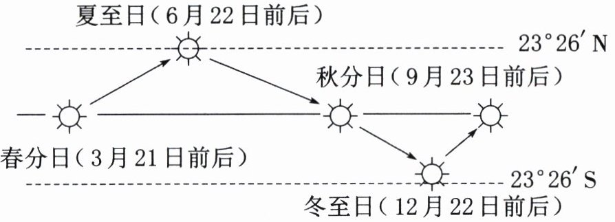 (2)太阳直射点逐渐向北移动