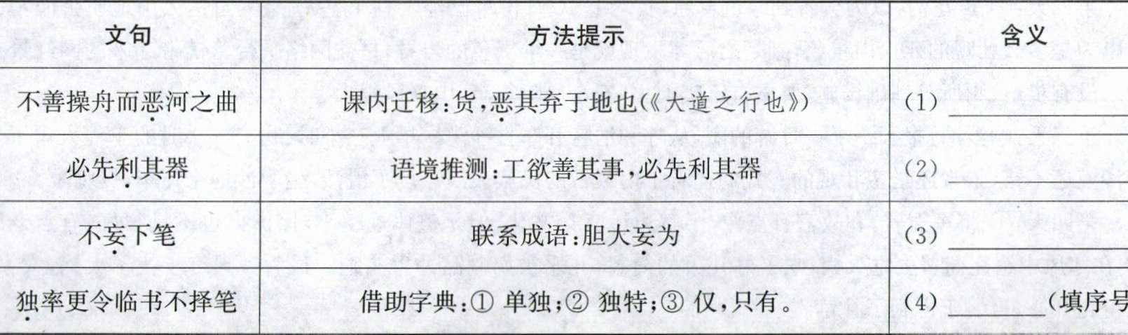 答案:7. (1) 厌恶 (2) 使……锋利 (3) 随便,胡乱 (4) ③