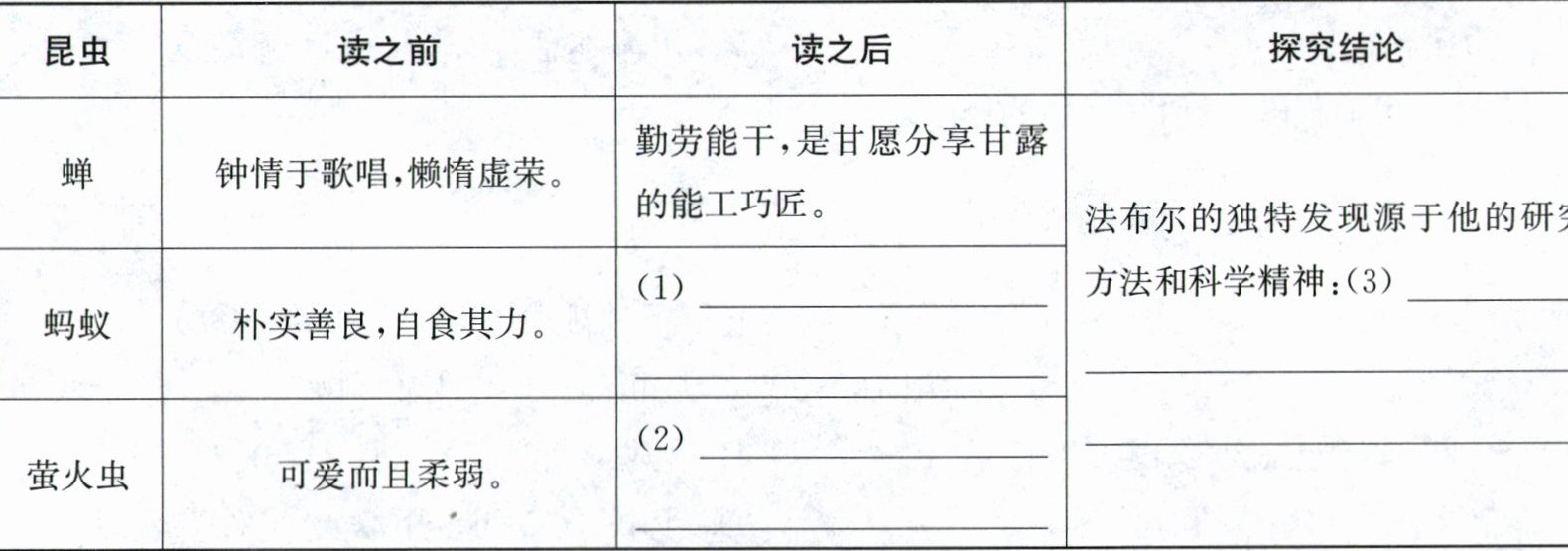 18. 阅读《昆虫记》后,有同学发现不少昆虫的特性与平常认知存在反差,请帮助他完成读书卡片。(6分)