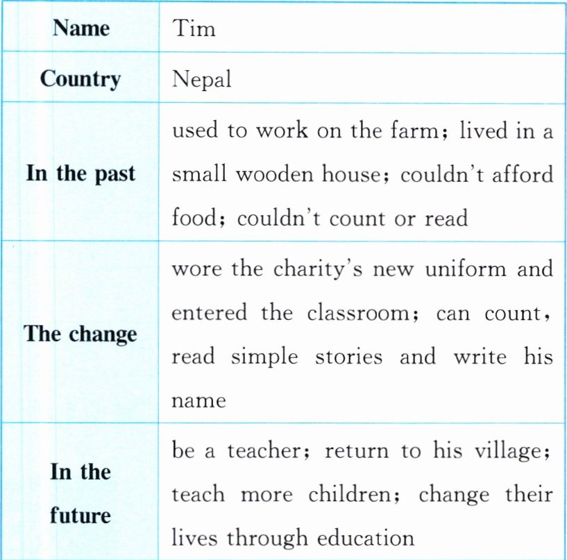 Tim is a poor boy from Nepal. He used to work on the farm in the mountains every day to help his family. He and his family lived in a small wooden house and couldn’t afford food. So Tim never went to school and couldn’t count or read.