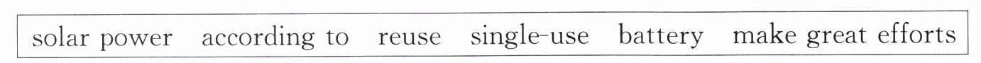 chopsticks to protect the environment.答案:二、1. According to 2. making great efforts 3. batteries 4. Reusing 5. single-use