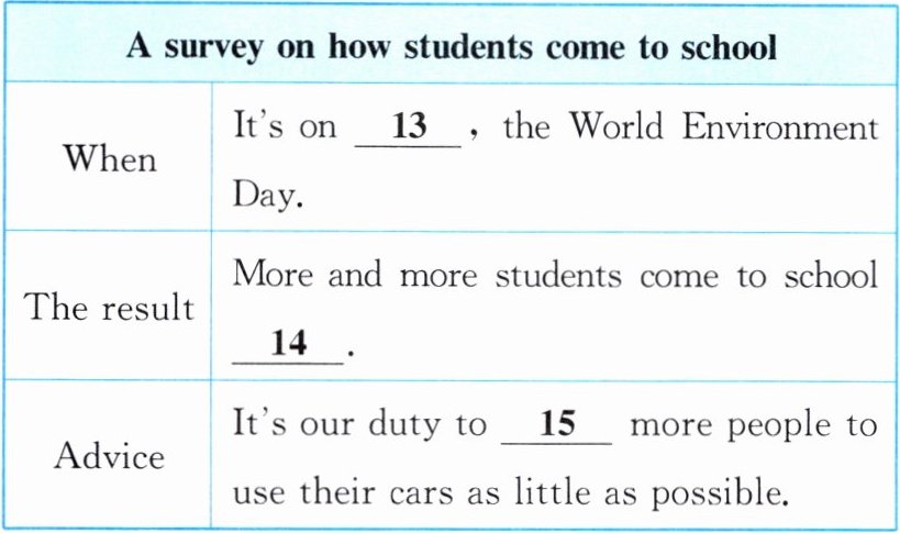 听第一篇短文,回答第13~15小题,请根据短文内容,选择正确答案,完成信息记录表。答题完毕,请等待“嘀”的信号,进入下一篇短文。