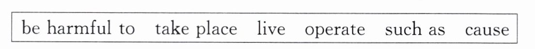 to provide poor children with food and clothes every year.答案:A 1. is harmful to 2. living 3. such as 4. operating 5. takes place