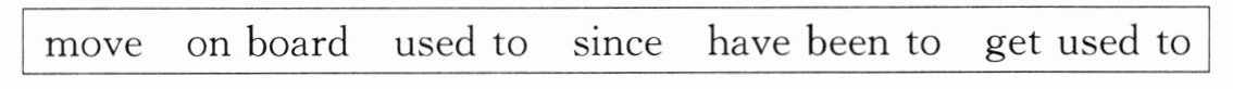 B 1. used to 2. on board 3. moved 4. has been to 5. since 6. get used to