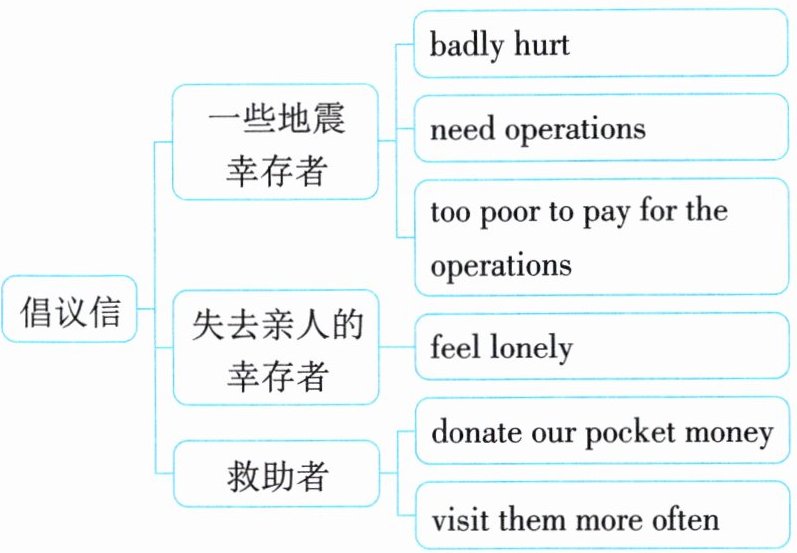 提示:1. 一些幸存者受伤严重,需尽快手术,但费用高昂,他们支付不起手术费;2. 一些幸存者失去了亲人,感到孤独,独自生活对他们来说很困难;3. 我们可以捐出零花钱,也可以到医院做志愿者,多关心他们……(至少补充一点);4. 感想。