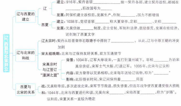 答案:第9课 辽、西夏与北宋并立