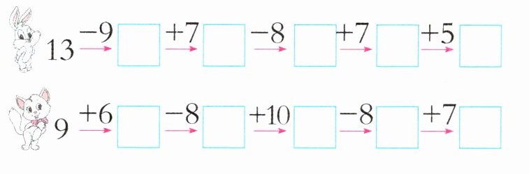 $7 + 5$ $◯$ $4 + 6$ $14 - 7$ $◯$ $15 - 9$