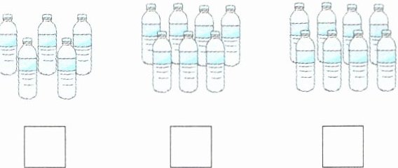 2. 王老师带着7名男生和5名女生一起去郊游,准备下面哪两堆水正好够每人一瓶?在$□$里画“√”。
