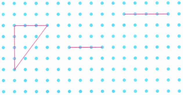 3. 根据给出的一条边在点子图上再画2个与已知三角形完全一样的三角形。