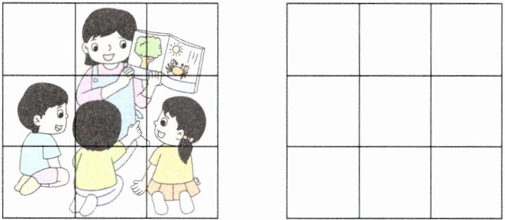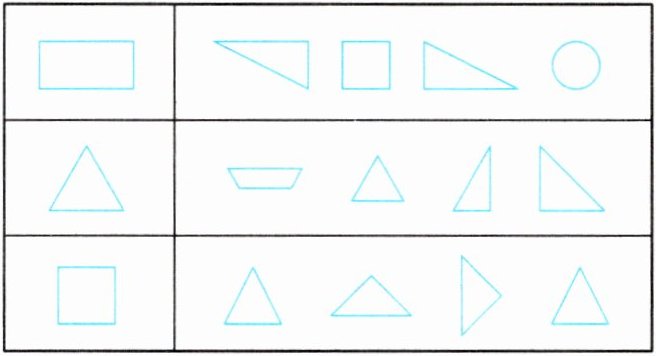 4. 从下面右边的图形中选出两个拼成左边的图形。(圈一圈)