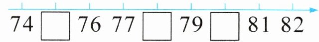 (1)在75到80之间的数有()个。