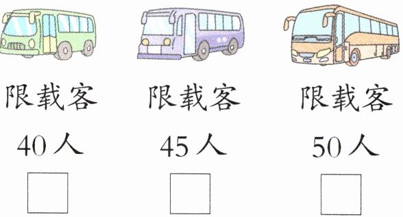 4. 李老师和王老师带领40名同学去参观博物馆,他们乘哪辆车最合适?在下面的$□$里画“√”。