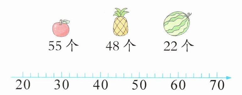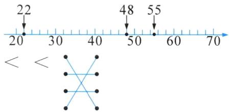 1. 先用点在直线上表示下面这几个数,再比一比,连一连。