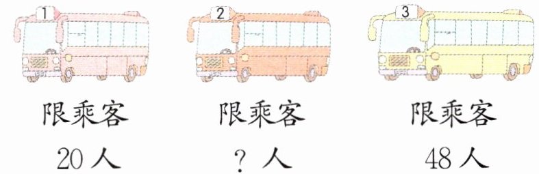 (1)一年级一班有 $40$ 人,坐满 $2$ 号车后还剩 $10$ 人。$2$ 号车限乘客多少人?