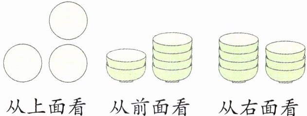 6. 桌子上有一些摞起来的碗,下面是从不同方向观察到的碗的情况。