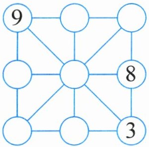里填数,使每一横行、竖行、斜行上三个数相加的和都等于18。