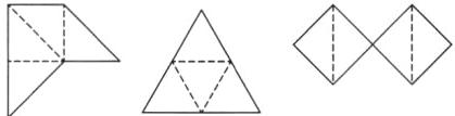 3. 下面每个图形都是由4个同样大小的三角形拼成的,你知道是怎样拼的吗?用虚线在图中画出这4个三角形。(9分)