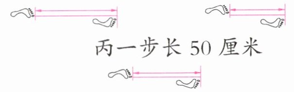 3. 甲、乙、丙三名同学沿同一条路从校门口走到教学楼门口。他们每人的一步长度如图,()走的步数最多。