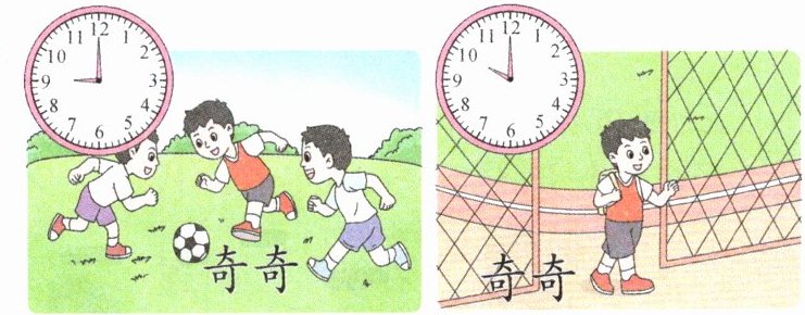 上午奇奇有一节体育课。在他上体育课的这段时间,时针走了(