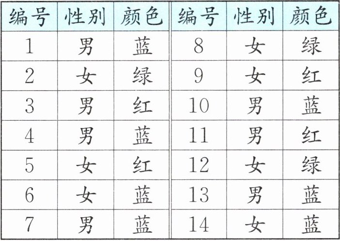 1. 下面是游泳队队员最喜欢的泳衣颜色的情况,记录如下。