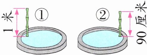 5. 如图,用两根同样长的竹竿测量两个水池里水的深度。(